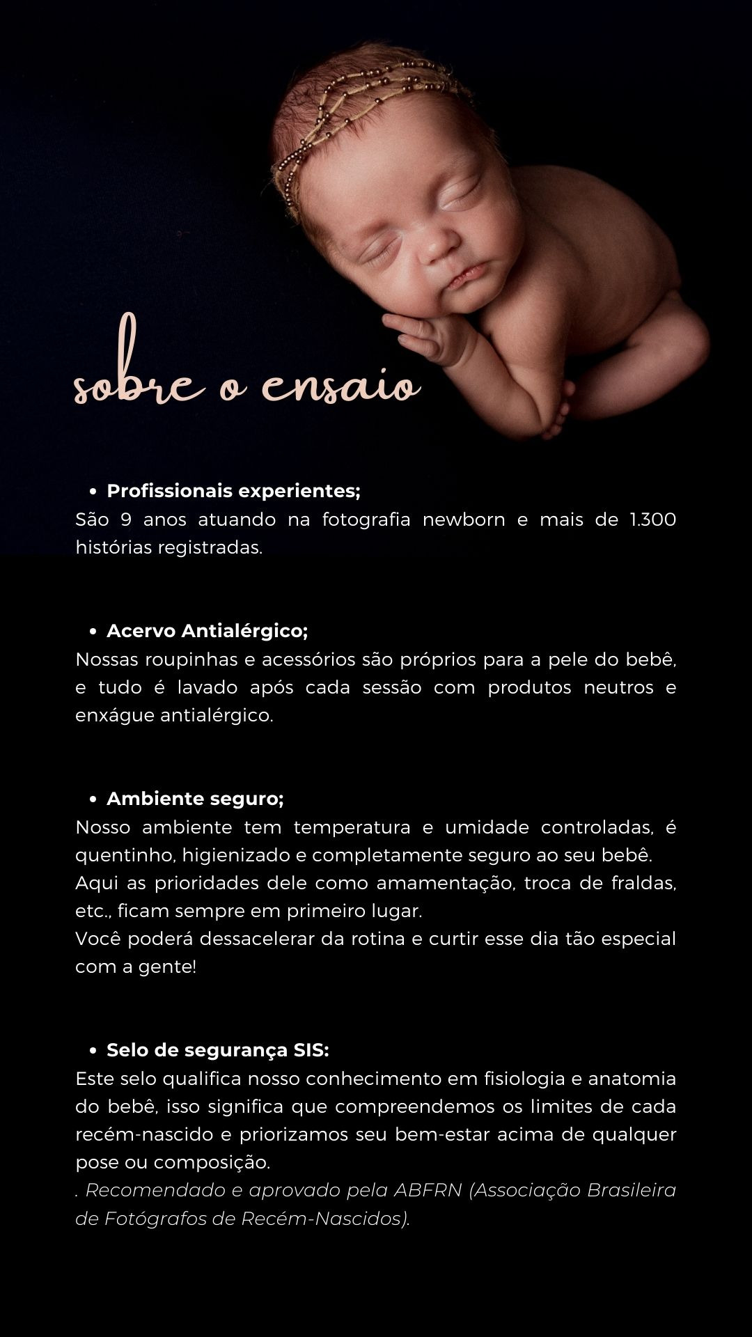 - Ter profissionais que entendem a fisiologia e anatomia do bebê, colocando SEMPRE a segurança do seu recém-nascido acima de tudo.